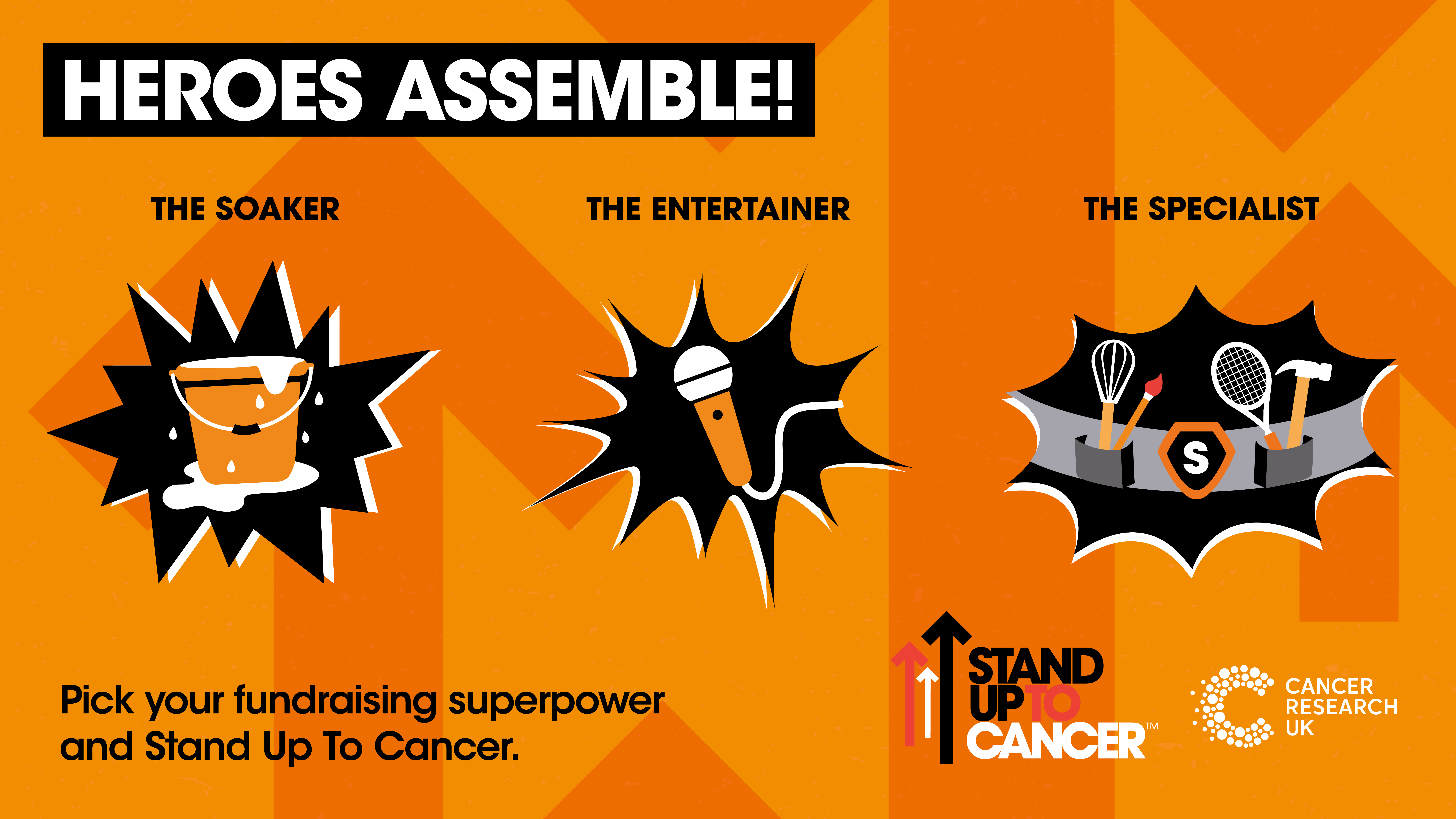 Welcome to your Heroes Assemble for Stand Up To Cancer challenge hub. Whether you're ready to choose your fundraising superpower and start raising money, or you're looking for resources to help promote the challenge across your organisation — you're in the right place.